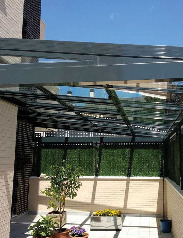 Los techos de cristal son la mejor forma de cubrir un espacio abierto, como una terraza, un patio interior. La estructura de aluminio es altamente resistente y duradero. Existe la posibilidad de instalar un techo fijo o techo movil con apertura manual o automatizada.