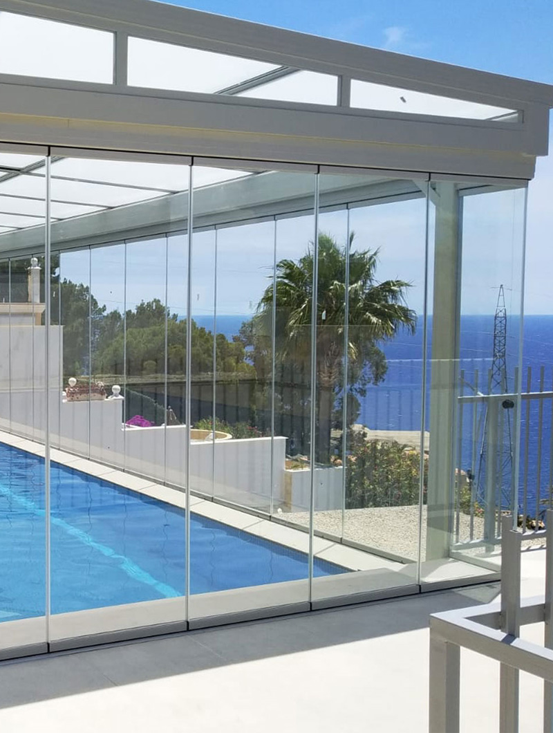 Ofrece una vista panorámica y permite disfrutar de la piscina en cualquier época del año, a la vez que aporta una estética moderna y elegante.